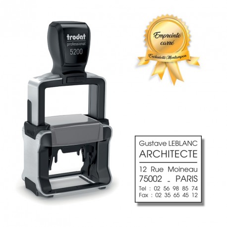 Le plus petit tampon encreur métallique revient avec un format d’empreinte carré. Si vous souhaitez une empreinte carrée pour votre tampon encreur Trodat 5200, vous la trouverez uniquement sur montampon !
