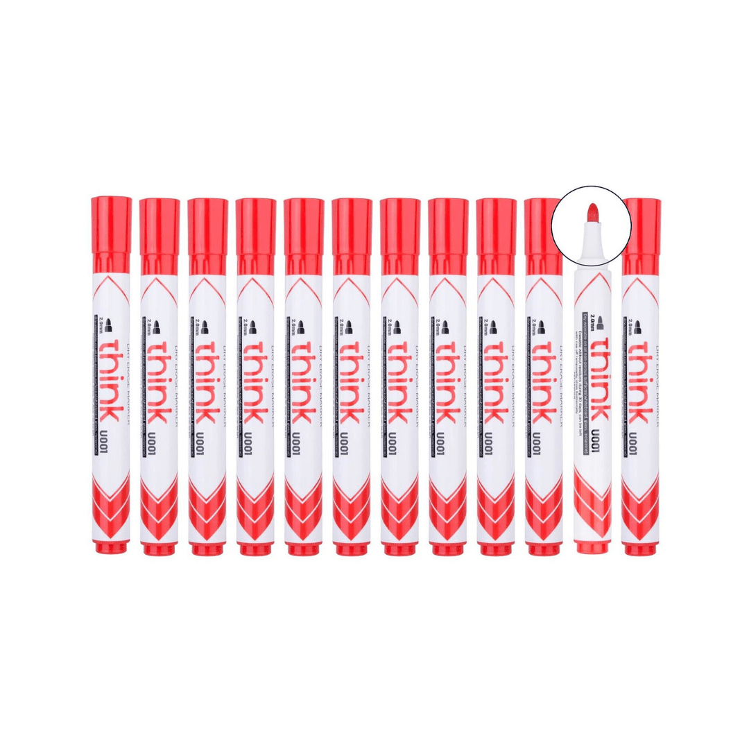 Marqueur Effaçable Think – Paquet de 12 unités en Rouge – DELI
