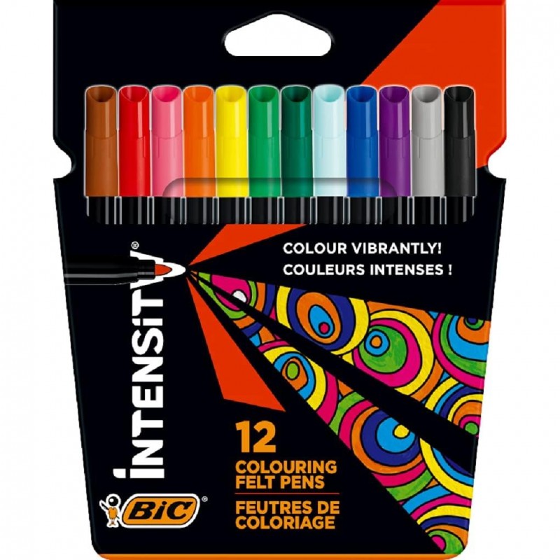 Les feutres de coloriage BIC Intensity sont disponibles en 12 couleurs vives, adaptés au coloriage pour adultes et bien plus encore